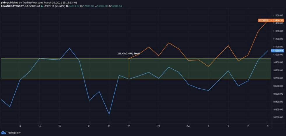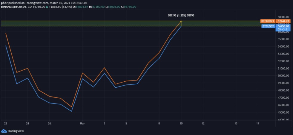Esta convergencia se evidencia al comparar los precios a lo largo del tiempo, como se muestra en el ejemplo BTCUSDT y el contrato de futuros de Bitcoin.
